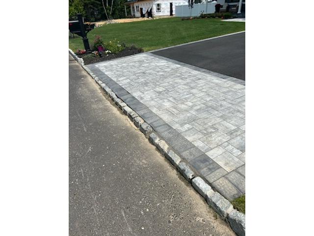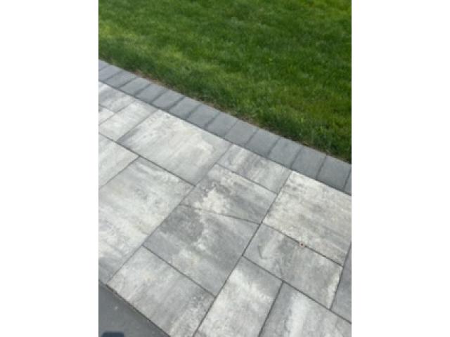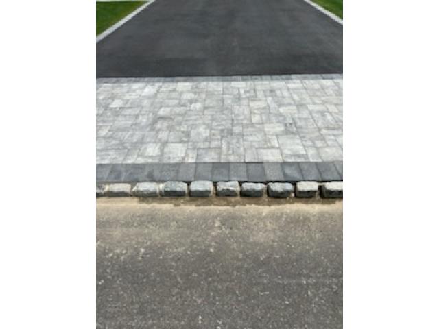 I have the stone for the back to be replaced and I have the stone in the driveway. They one paver that needs to be replaced as you can see the apron needs cement between the pavers and the cobble and then in between the cobbles and two cobbles are crooked