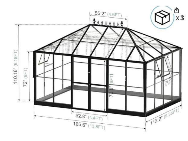 Green house to assemble from a box 14 feet by 9 feet and planters